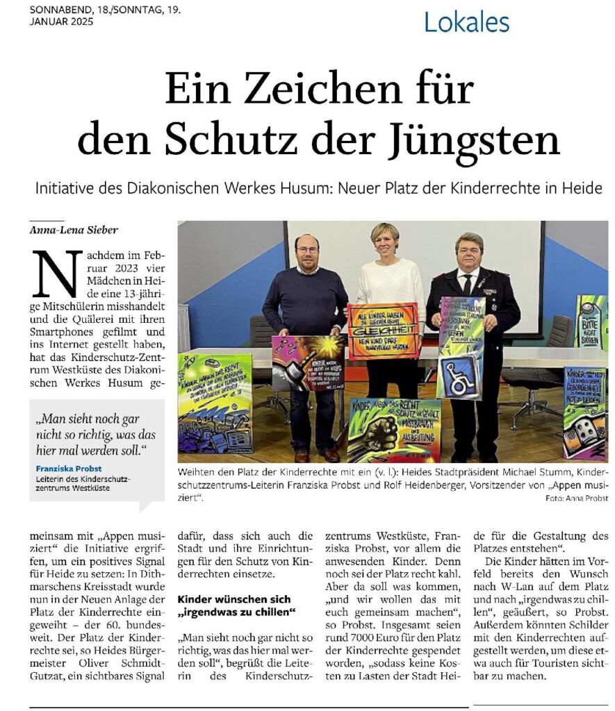 Ein Zeichen für den Schutz der Jüngsten22. Januar 2025 Initiative des Diakonischen Werkes Husum: Neuer Platz der Kinderrechte in Heide