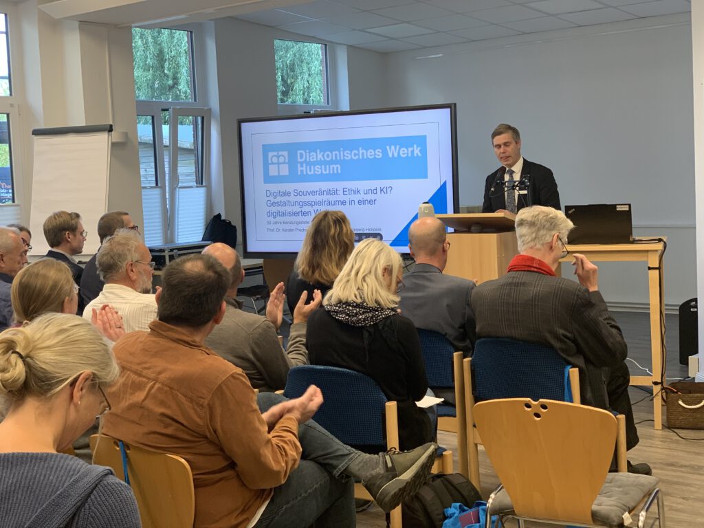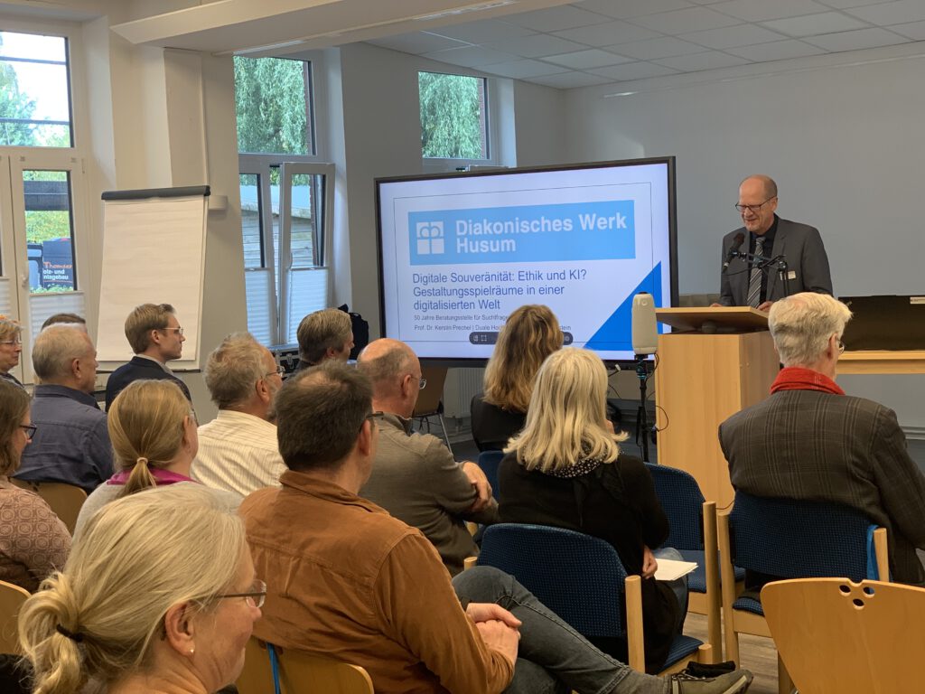 Mit einem interessanten Fachtag am 17. Oktober 2024 feierte die Beratungsstelle für Suchtfragen ihr 50-jähriges Bestehen in den Räumlichkeiten der Ev. Familienbildungsstätte. Das Kernthema des Jubiläums war mit Blick auf die Zukunft gewählt: „Chat Bot vs. Mensch: Zukunft der psycho-sozialen Beratung“. Dazu hatte die Beratungsstelle die Referentinnen Professorin Kim Bräuer und Professorin Kerstin Prechel eingeladen, die gemeinsam mit Roland Linder, Einrichtungsleiter der Beratungsstelle, den Fachtag gestalten sollten. Da Professorin Bräuer kurzfristig absagen musste, hat Professorin Prechel durch den interaktiven Vortrag und den Workshop geführt.