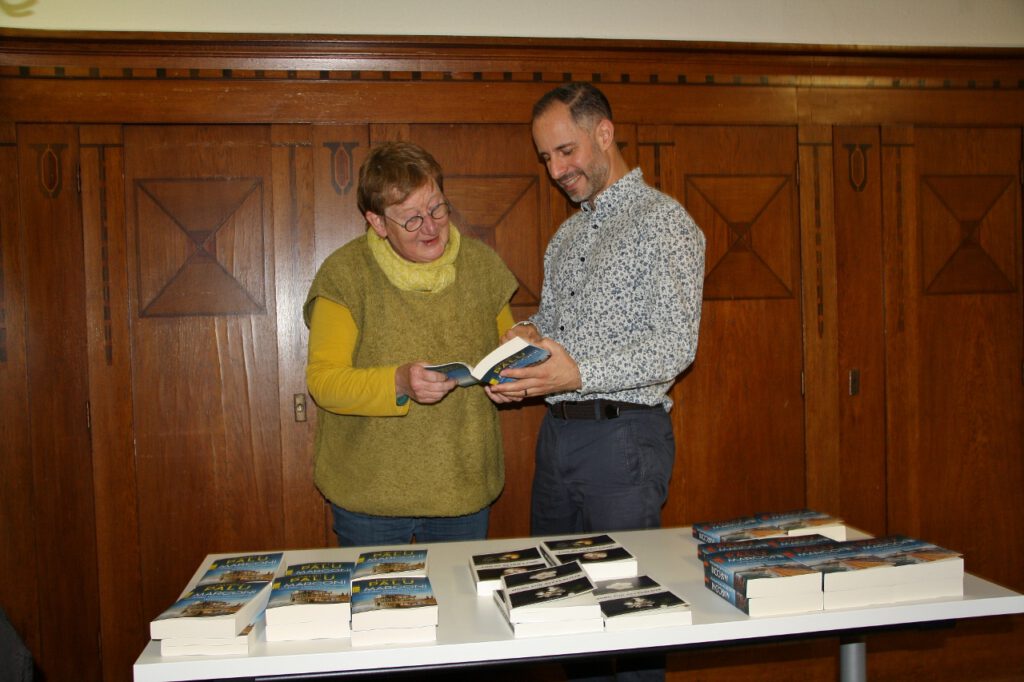 „Ich habe der Figur des Kommissars Marconi viele Hürden in den Weg gelegt“, erzählt Palu. Darüber hinaus verfolgt der Autor ein größeres Ziel: „Ich möchte der Leserschaft die aktuellen Herausforderungen der Gegenwart mit den Mitteln des Unterhaltungsromans nahebringen. Denn oftmals erreicht man viel mehr Menschen, wenn schwierige Themen amüsant und lebendig behandelt werden.“ Dabei gehe es nicht darum, Position zu beziehen, sondern vielmehr Argumente wertfrei nebeneinander zu stellen und so mehr Verständnis zu erzielen. Auf sympathische, locker-entspannte Art und Weise führte Till Butterbach, Schauspieler aus Husum, durch die Veranstaltung: „Es ist ein Buch mit Tiefgang, das aktuelle, zeitnahe Themen aufgreift, Klischees auffährt, dann aber auf kurzweilige Weise auflöst. Es geht immer wieder lustig zu zwischen Momenten voll Spannung; ich mag den Unterhaltungswert des Buches“, so Butterbach am Rande der Veranstaltung.