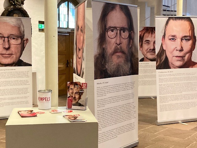 Vom 6. bis zum 24. Oktober wird die Ausstellung „Menschen wie wir“ in Husum zu sehen sein. Zum 30-jährigen Jubiläum entstand eine Porträtserie aus zwölf großformatigen Bild-Text-Kombinationen, die als Roll-ups produziert und gezeigt werden. Die Abgebildeten, Menschen, die das Straßenmagazin HEMPELS in den letzten drei Jahrzehnten geprägt haben, stellen sich in eigenen Worten vor. Weitere Details und Informationen zum Rahmenprogramm werden im September auf unserer Webseite zu finden sein.